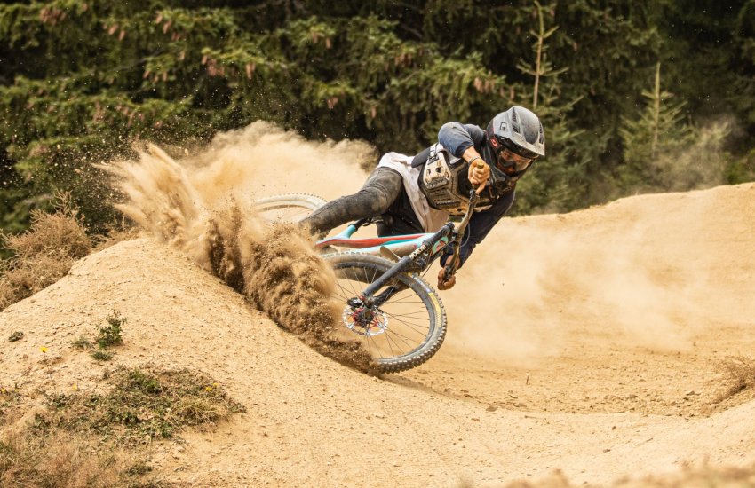 I've flipped a bike a hundred times before but this one is different, the bike is new, my Fox kit is fresh and there's a pro videographer here to film it, normally it's just Santiago's I-Phone. He'll be here soon with Mark so I keen to get the shots and ride with the crew. Deep breath, drop in. Wooden ramps are awesome for this stuff, predictable and solid as I pull back and push through the pedals. No matter how many times I go upside down it's always a relief to see the ground come back underneath me. Soft landing, perfect. "Yep! That's good, now do it again please, different angle" Sure I think, I'll do this all day, a quick check of the footage brings the stoke, damn this camera is good. 5 flips later and we got it. Between that and the shots we got earlier, Scott's got what he needs.I've gone down afew times though, ruined a top with a ripped shoulder but worth it. I'm fired up and so is he so we dial the lads and see where they are at, Super Morzine. Time to meet the boys and lap it out.