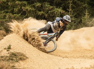 I've flipped a bike a hundred times before but this one is different, the bike is new, my Fox kit is fresh and there's a pro videographer here to film it, normally it's just Santiago's I-Phone. He'll be here soon with Mark so I keen to get the shots and ride with the crew. Deep breath, drop in. Wooden ramps are awesome for this stuff, predictable and solid as I pull back and push through the pedals. No matter how many times I go upside down it's always a relief to see the ground come back underneath me. Soft landing, perfect. "Yep! That's good, now do it again please, different angle" Sure I think, I'll do this all day, a quick check of the footage brings the stoke, damn this camera is good. 5 flips later and we got it. Between that and the shots we got earlier, Scott's got what he needs.I've gone down afew times though, ruined a top with a ripped shoulder but worth it. I'm fired up and so is he so we dial the lads and see where they are at, Super Morzine. Time to meet the boys and lap it out.