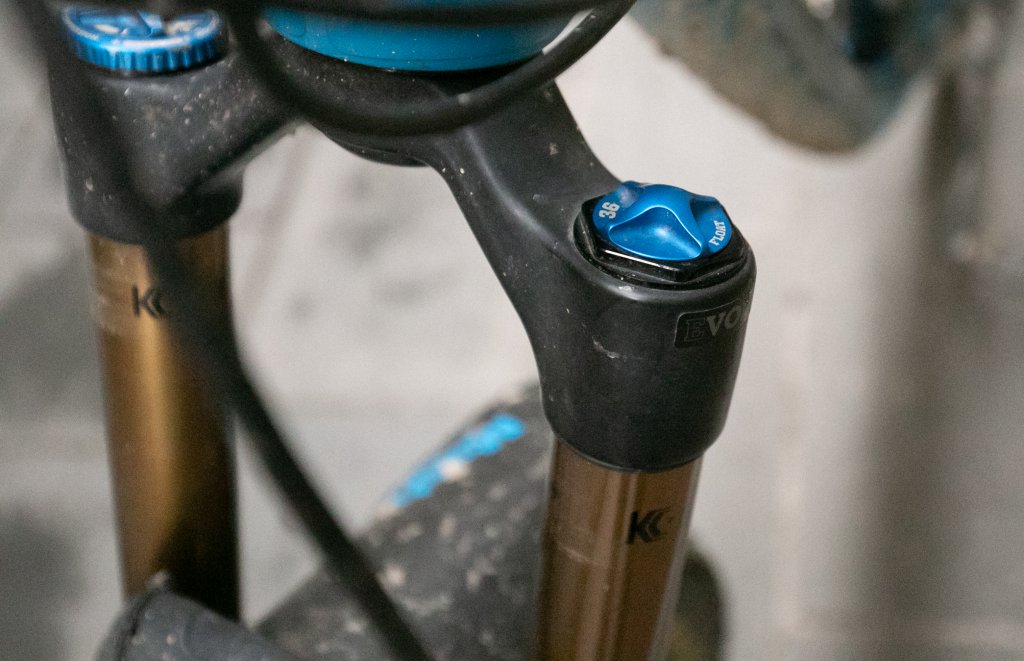 For starters, drop some PSI from your fork. How much is going to be dependent on how heavy you are and where your starting pressure is. For example, the rider of this Transition Patrol is 70kg and usually runs 2 volume spacers and 68 PSI in his Fox 36. Dropping to 60 psi gave the best results in grip and small bump sensitivity, which is what we're looking for, so around 12% of starting pressure.